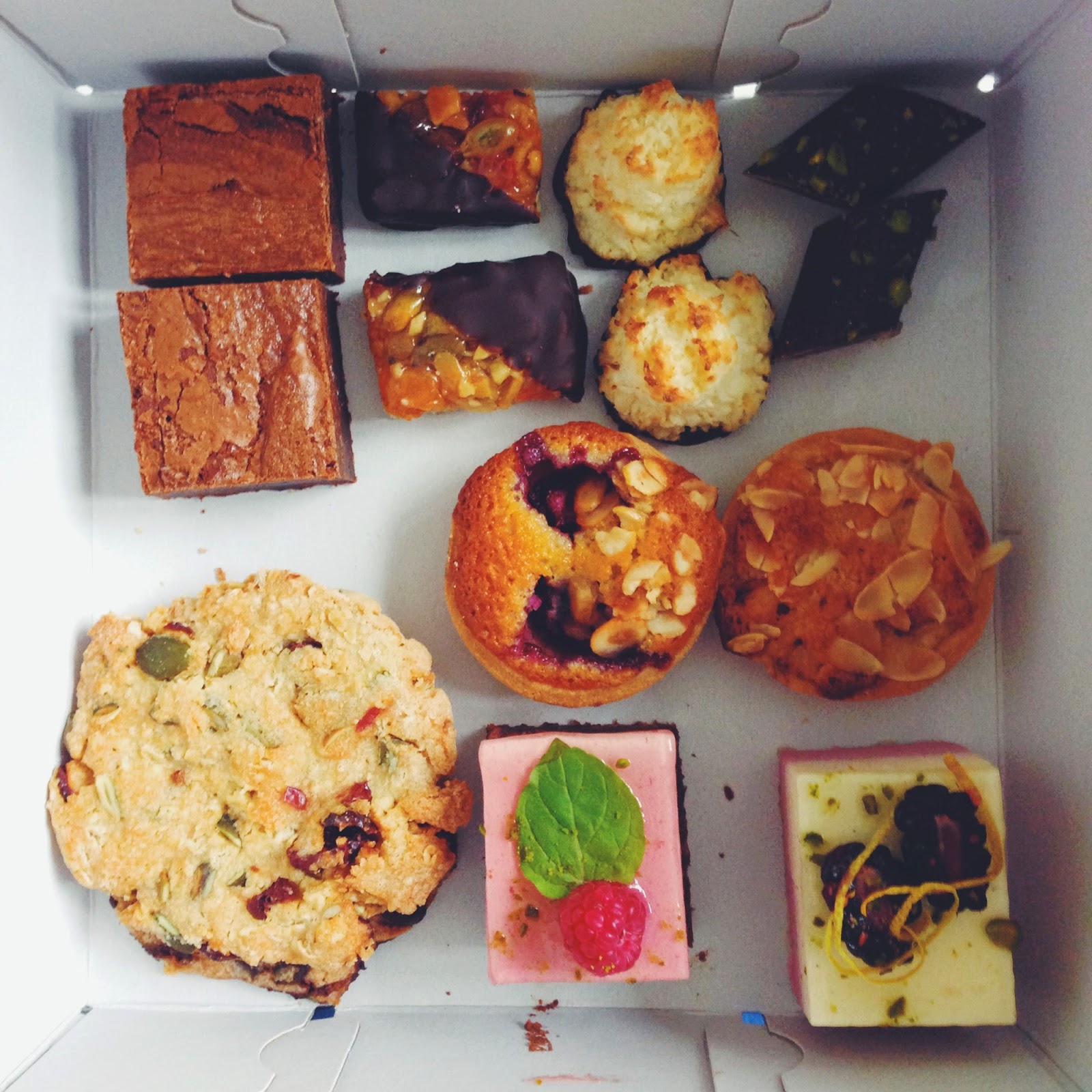 We received a Smartbox for a sweet treat this week from some friends of ours. Since the gift card was expiring this weekend, we had to use it! There are several places you can choose to redeem your gift card at. For example, you can have cake and macarons at Strangas, you can have cupcakes at Serenity in the city, or you could try a mix of baked treats and meringues from Dessertdragen. Since I've already tried most things at Strangas, the fiance and I decided to order a box of treats from Dessertdragen. I was pleasantly surprised by how delicious their berry tarts, brownies, and shortbread cookies were. Their meringues though were by far my favorite. They were amazing! They tasted like chocolate chip cookie dough in a meringue form. I'm already thinking about how I can recreate them at home! By the way, we didn't eat everything in one sitting, we actually spread all of the treats out over three nights!